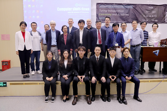 副校长贾维嘉教授、协理副校长左龙佩兰教授、协理副校长贝力行教授、理工科技学部老师及图灵创协主要成员合影